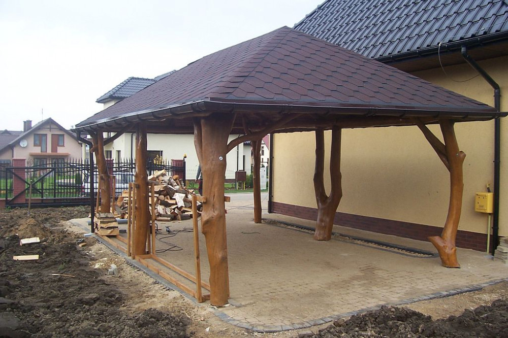 1. Elementy altany wykonane z pni drzew korowanych, suchych, wyszlifowanych, zaimpregnowanych.