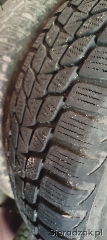 Opony zimowe w dobrym stanie technicznym, przechowywane napompowane, na stojaku, w ciemnym pomieszczeniu.