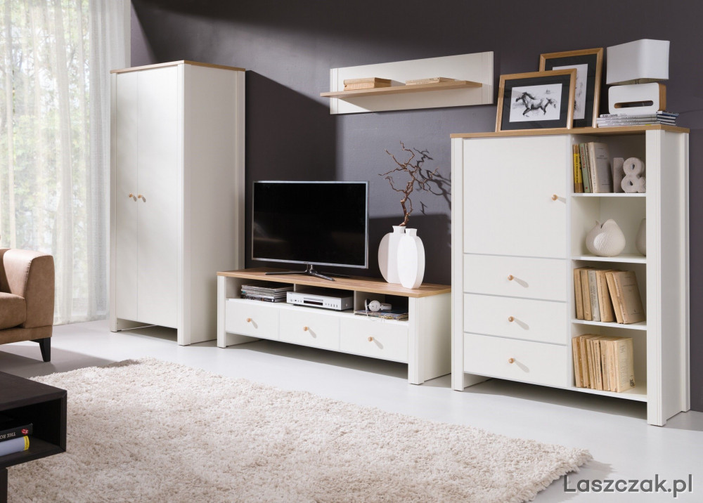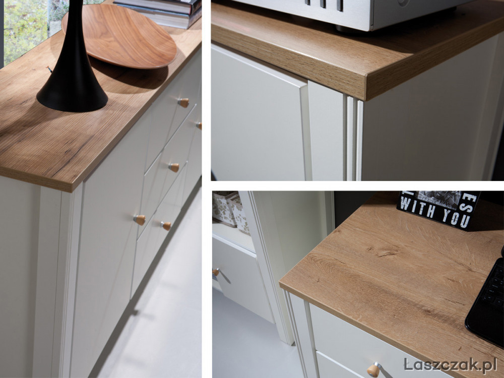 Wysokiej jakości meble w stylu skandynawskim. Płyta meblowa w kolorze cream/dąb złoty.