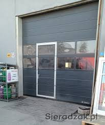 Sprzedam bramę garażowa segmentówa przemysłowa o wymiarach 4500x4290 kolor RAL 7016 drzwi przejściowe 2 panele przeszklone aluminiowe otwierana za pomocą przekładni łańcuchowej przystosowana do montażu napędu elektrycznego .