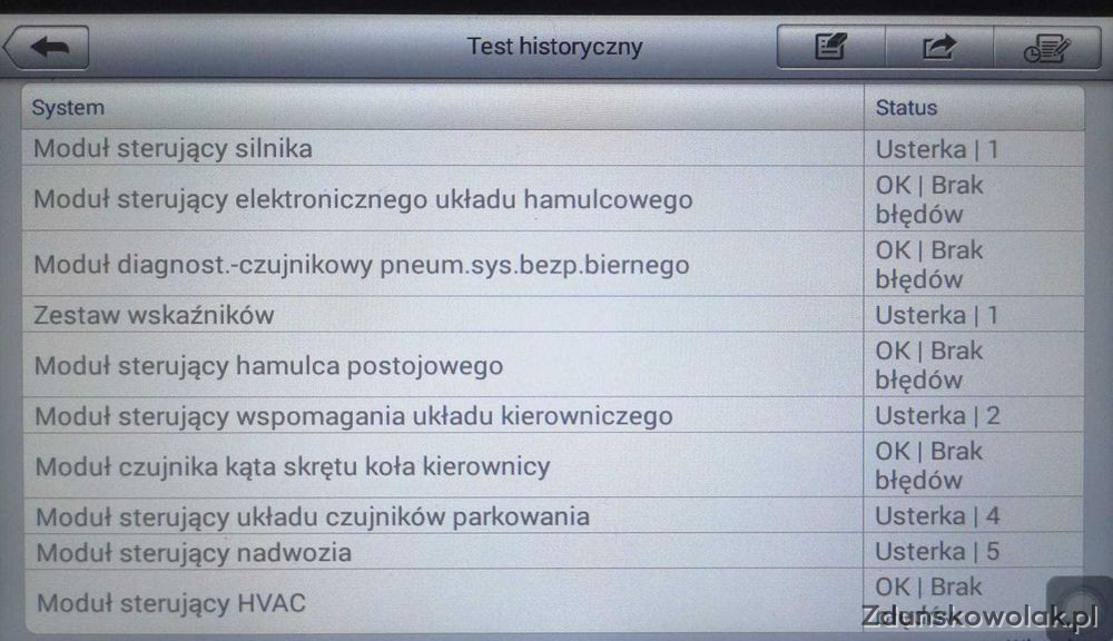 - sprawdzenie karoserii miernikiem grubości lakieru, oraz określeniu powłoki lakierniczej; oceniam jakość wykonanej naprawy i zwracam uwagę na punkty korozji