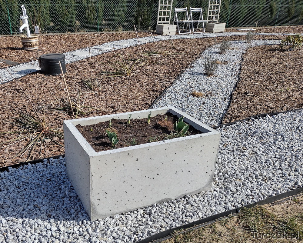 Donica z betonu architektonicznego w 4 kolorach ( szara, grafit, czerwona, brąz) pnie, drewno betonowe również dostępne w 4 kolorach. tel 691-083-352 lub 601-652-300