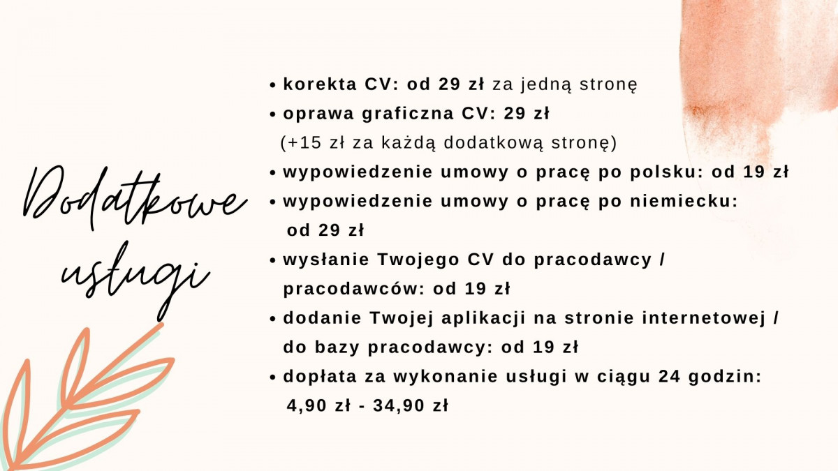 - CV po polsku: 79 zł (plus 29 zł za każdą dodatkową stronę)