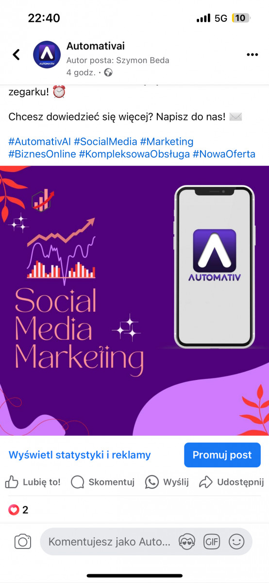 Dopiero co założyliśmy nowy biznes w naszym mieście! Jeśli brakuje Ci czasu na prowadzenie social media, chętnie zrobimy to za Ciebie od A do Z – prowadzenie profili, puszczanie reklam, odpisywanie na wiadomości i komentarze – wszystko to w świetnej cenie.