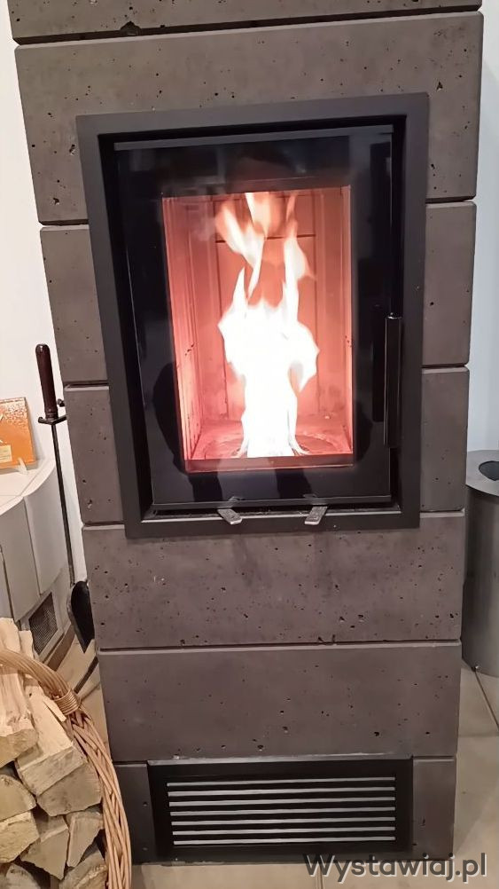 Firma FHU „Sobkowiak” oferuje hybrydowy akumulacyjny wolnostojący piec kominkowy na gaz drzewny generowany z pelletu i jednocześnie na drewno. To nowej generacji urządzenie grzewcze, wyznaczające nowy trend w nowoczesnym zduństwie, będące w zgodzie z transformacją energetyczną i realizacją europejskich celów klimatycznych Zielonego Ładu. Zasyp pelletu odbywa się w nim ręcznie, bez zasilania prądem. Bez prądu samoczynnie zgazowuje się i spala wytworzony gaz drzewny, korzystając tylko z naturalnego ciągu kominowego. Generator gazu drzewnego z pelletu nie posiada mechanicznego podajnika, wentylatora i innych ruchomych części. Jest trwały i niezawodny w każdych warunkach. Jednym zasypem pelletu (bez dokładania) naładujemy piecyk energią cieplną na 8 (przy -20°C), a nawet na 12 godzin (przy +3°C). Przez taki okres czasu będzie on ogrzewał pomieszczenie całkowicie bez konwekcji (bez ruchów gwałtownie przegrzanego suchego powietrza), najzdrowszym łagodnym ciepłem – przez promieniowanie podczerwone o długości fali promieniowania słonecznego. Działa poprzez magazynowanie ciepła w całej swej pojemnej masie i radiację, niczym najlepsze piece tradycyjne. Stopniowo i stabilnie emituje przyjazne i komfortowe ciepło przez wiele godzin do otoczenia, wytwarzając tzw. naturalną klimatyzację piecową. Jest zamkniętą bryłą, wypromieniowującą energię cieplną całą swoją powierzchnią, czyli w najlepszy i najzdrowszy sposób jaki dała nam natura. Nie ma żadnych kratek wylotowych gorącego powietrza. Gaz drzewny pali się w nim naturalnym, żywym i dynamicznym płomieniem kominkowego ognia. W sytuacji braku dostępu do pelletu lub gdy chcemy zmienić rodzaj paliwa, przykrywamy zgazowujący palnik i spalamy drewno lub brykiet drzewny, zachowując jednocześnie emisję na poziomie znacznie niższym od dopuszczalnych granicznych wartości wyznaczanych przez Ekoprojekt jako bezpieczne dla zdrowia ludzi i środowiska. Palimy w nim, nie drogim twardym liściastym drewnem kominkowym, tylko najtańszym drewnem opałowym (także iglastym): drobnicą, gałęziówką. Jego użytkowanie jest trzykrotnie tańsze niż popularnej kozy czy kominka konwekcyjnego. Przy paleniu pelletem, nie musimy rąbać drewna, sezonować i składować na całą zimę. Zawsze możemy kupić tylko tyle worków w markecie, ile mamy miejsca na ich składowanie. Możemy też natychmiast po zakupie wsypać go do paleniska. Hybryda zapewnia nam do wyboru dwa odmienne widowiska, przy zawsze czystej i przejrzystej szybie: gorące źródło ekscytującego i kapryśnego ognia z gazu drzewnego i efektowną płomienną ścianę palących się polan. Piecyk może być podłączony do zwykłego ceglanego komina i to bez stalowego wkładu w środku, jak dawny piec kaflowy. To rewelacyjna wiadomość dla mieszkańców starych nieocieplonych domów i zimnych kamienic. Pellet jest także użyteczny dla ludzi zapracowanych lub bardzo wygodnych i pasywnych, a też chcących mieć kontakt z prawdziwym hipnotycznym ogniem. Szczególnie zalecany jest do nowych domów niskoenergetycznych z rekuperacją (posiada zamkniętą komorę spalania) o niskim zapotrzebowaniu na energię, w których zwykła koza nie sprawdza się, gdyż w krótkim czasie przegrzewa powietrze we wnętrzu do bardzo wysokiej temperatury. Prezentowany piec kominkowy wytworzony jest w całości ze specjalnego kompozytu szamotowego w kolorach: ciemnobrązowym, szarym lub podstawowym ciemnoczerwonym. Ma fakturę obecnie tak modnego betonu architektonicznego. Kompozyt ma pojemność i przewodność 3x większą od zwykłego szamotu. Piecyk, mając kompaktowe wymiary (wys. 162 cm, szer. 48 cm, głęb. 61,5 cm), ale ważąc 650 kg, jest w stanie stabilnie (bez skoków temperatury i efektu przegrzanego pomieszczenia) ogrzać powierzchnię 70-80 m2 nowo budowanego domu. Podobnie jak ceramiczne kafle, jest bardzo bezpieczny dla użytkowników. Rozgrzany do wysokiej temperatury, nie oparzy boleśnie jak stal czy żeliwo, więc można się do niego nawet przytulić. Bardzo wolno rozgrzewa się na zewnątrz, akumulując w tym czasie energię w swej kompozytowej masie, a później przez wiele godzin, w sposób równomierny i stabilny, łagodnie wypromieniowuje ją z siebie, nie wywołując ruchu powietrza z alergennymi odchodami roztoczy i bez przegrzewania pomieszczeń.