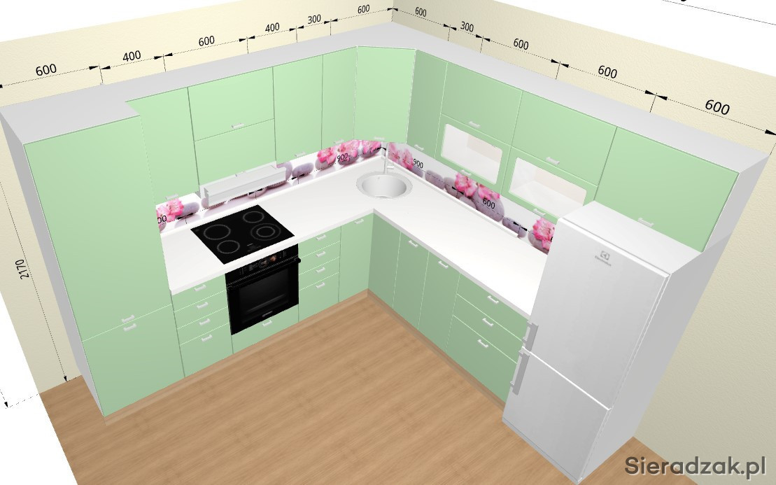 Uwaga: szafki dolne dostarczane są z nogami, bez cokołu.