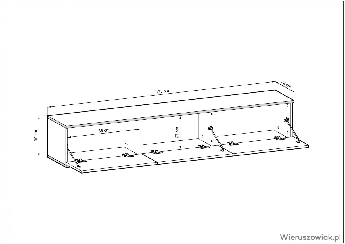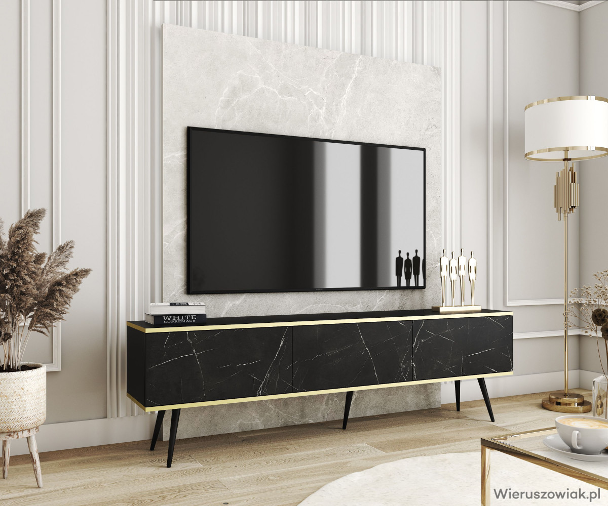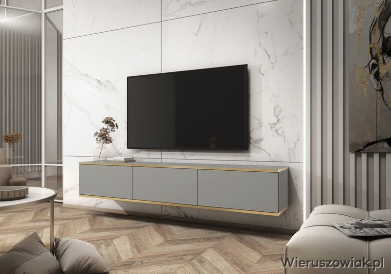 Podkreśl styl swojego wnętrza i ciesz się funkcjonalnością, jaką oferuje wisząca szafka RTV ALBA 175 ze złotymi wstawkami. Zamów ją już dziś i wprowadź do swojego domu odrobinę luksusu!