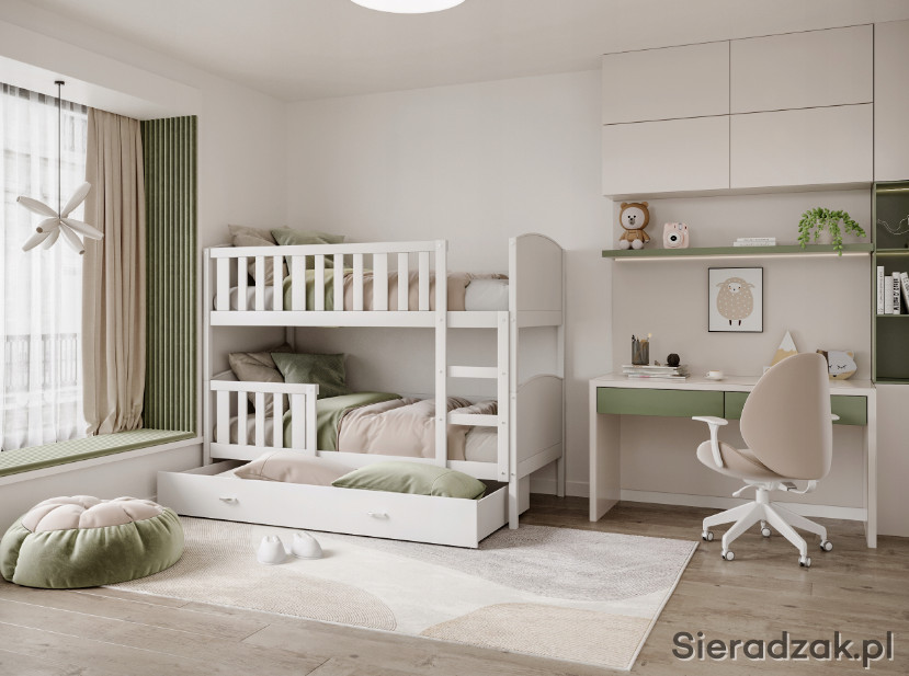 TAMI to popularny model również przez wzgląd na swoją solidną i bezpieczną konstrukcję. Górne łóżko ma wysoką przedłużoną barierkę, która chroni przed upadkiem podczas snu, a mocna drabinka zapewnia swobodne wchodzenie i schodzenie. Dodatkowym atutem jest możliwość rozłożenia łóżka na dwa pojedyncze, jeśli zajdzie taka potrzeba.