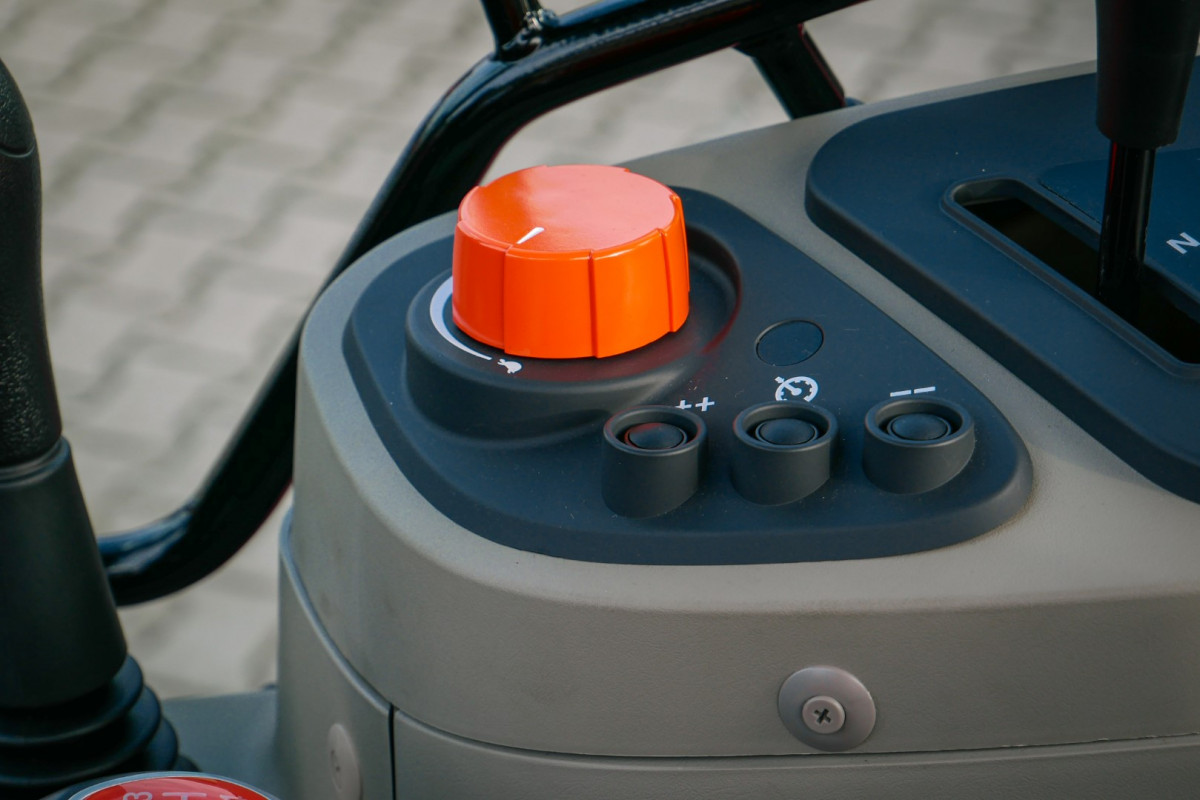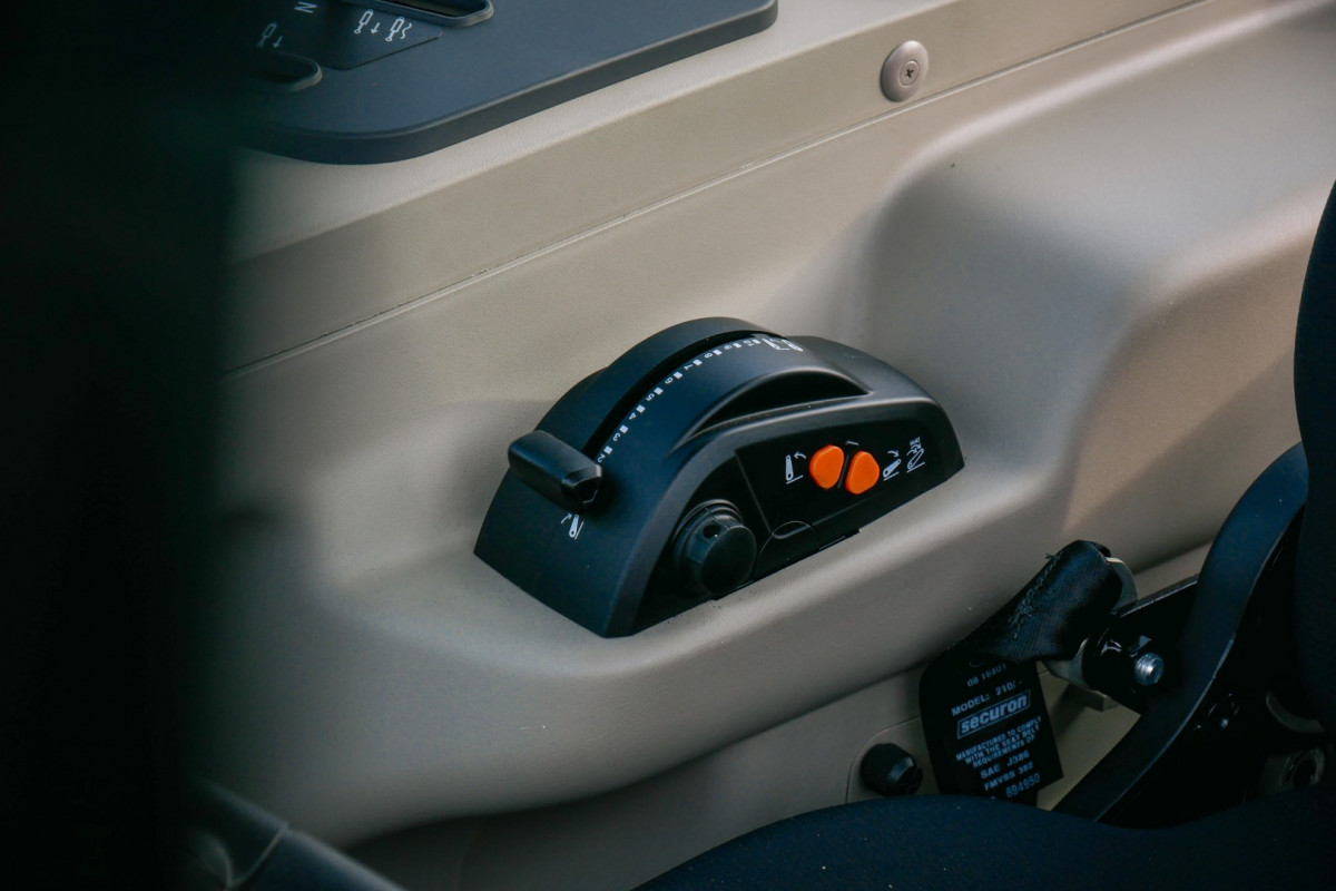 - Komfortowy mechaniczny fotel operatora z pasami bezpieczeństwa