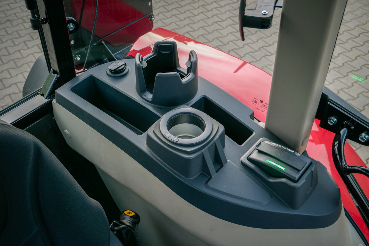 Zastosowany w nim silnik Deutz oferuje wysoką moc i moment obrotowy, nawet przy niskich obrotach. Jego dłuższa żywotność i wysoka niezawodność sprawiają, że jest idealnym wyborem, jeśli chodzi o zwiększenie produktywności. Ciągnik posiada elektroniczny panel sterowania hydraulicznego co umożliwia łatwe sterowanie osprzętem i funkcjami hydraulicznymi maszyny. Z ciekawych rzeczy posiada bezprzewodową ładowarkę indukcyjną do smartfona oraz uchwyt na kubek do podgrzewania lub chłodzenia, co zapewnia komfort podczas wielogodzinnej pracy.