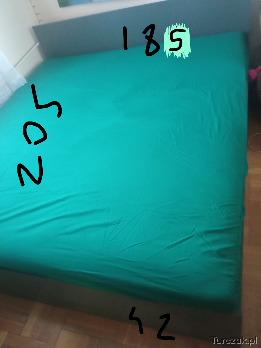 Sprzedam łóżko sypialniane 185 x 205 cm , wysokość 42 cm, grubość materaca 15 cm . Duży schowek pod łóżkiem.