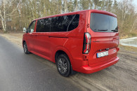 Oferta wynajmu NOWEGO BUSA Ford Transit Custom w wersji wyposażenia Limited, charakterystyczny kolor Artisan Red, z manualną skrzynią biegów.