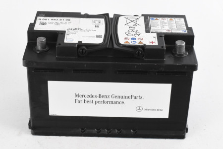 Akumulator A0019828108 (kod producenta) to oryginalna bateria rozruchowa przeznaczona do samochodów marki Mercedes-Benz, wykonana w technologii AGM (Absorbent Glass Mat), stosowana fabrycznie w wielu modelach tej marki.